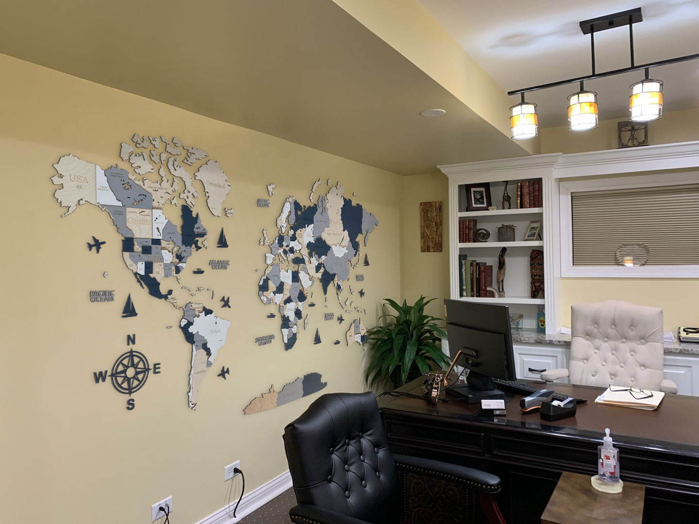 The result is so satisfying and fulfilling to look at. Check out the perfectly matching wooden tones. The wooden world map and the top of the cabinet are in harmony with the surrounding colors.